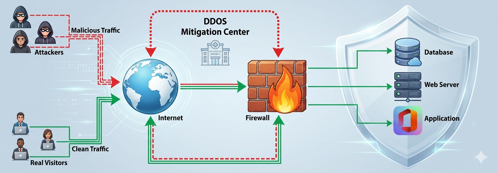 DDoS Protection prevents attackers from overwhelming a website or server with too much fake traffic so that real users can still access it normally.